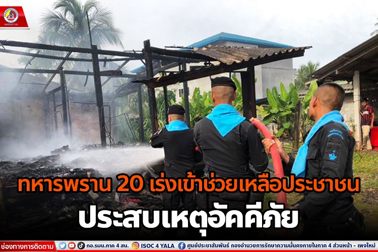 พันตรี พิชัยยุทธ กุงนอก ผู้บังคับกองร้อยทหารพรานที่ 2001 ได้รับการประสานจากประชาชนในพื้นที่ ว่ามีบ้านเรือนของประชาชนเกิดไฟไหม้ บริเวณบ้านเลขที่ 127/13 บ้านพงสตา หมู่ที่ 5 ตำบลยะรัง อำเภอยะรัง จังหวัดปัตตานี ทางหน่วยจึงจัดชุดเคลื่อนที่เร็ว ร่วมกับ จนท.จากบรรเทาสาธารณภัย ตำบลประจัน และผู้นำหมู่บ้าน เข้าทำการช่วยระงับดับเพลิง ฉีดน้ำป้องกันไม่ให้ไฟลุกลาม โดยได้กระจายกำลังกันพื้นที่เกิดเหตุ และห้ามผู้ไม่มีส่วนเกี่ยวข้องเข้าในพื้นที่หวั่นได้รับอันตราย และช่วยกันระดมกำลังฉีดพ่นน้ำเพื่อป้องกันการลุกลาม จากการสอบถาม ทราบว่าเป็นบ้านของนาย นายอาหามะ อาเล็ง สาเหตุคาดว่าน่าจะไฟฟ้าลัดวงจร โดยรอการตรวจสอบข้อมมูลที่ชัดเจนจากส่วนที่เกี่ยวข้อง นอกจากนี้ ทางหน่วยเฉพาะกิจกรมทหารพรานที่ 20 ได้มอบสิ่งของอุปโภคบริโภคให้ที่จำเป็นให้กับ นายอาหามะฯ เพื่อบรรเทาความเดือดร้อนในเบื้องต้น และให้กำลังใจ โดยหลังจากนี้จะช่วยประสานหน่วยงานที่เกี่ยวข้องเข้าให้การช่วยเหลือต่อไป
