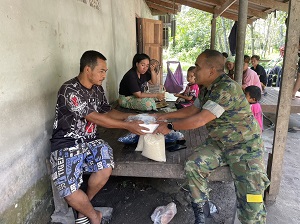 เมื่อวันที่ 11 กันยายน 2566 เวลา 13.00 น. กองร้อยปืนเล็กที่ 2 หน่วยเฉพาะกิจนาวิกโยธินที่ 33 เดินเท้าเข้าพบปะเยี่ยมเยียนพัฒนาสัมพันธ์กับ นาย อนุวา เจ๊ะอาแซ ซึ่งประกอบอาชีพกรีดยางพาราในพื้นที่ บ้านทุ่งขนุน หมู่ที่ 3 ตำบลลำภู อำเภอเมือง จังหวัดนราธิวาส พร้อมกันนี้ ได้มอบข้าวสาร ยาสามัญประจำบ้าน และนมกล่องอันเม็ด เพื่อเป็นการช่วยเหลือ บรรเทาความเดือดร้อน ด้วยความห่วงใยและใส่ใจในการดูแลประชาชนในทุกโอกาส