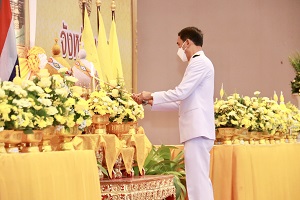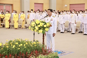 จากนั้น นายอำพล พงศ์สุวรรณ ผู้ว่าราชการจังหวัดยะลา ประธานในพิธี นำส่วนราชการและพสกนิกรทุกหมู่เหล่า ร่วมพิธีวางพานพุ่มและพิธีถวายบังคมเบื้องหน้าพระบรมฉายาลักษณ์ฯ เพื่อแสดงความจงรักภักดี และน้อมรำลึกในพระมหากรุณาธิคุณของพระบาทสมเด็จพระบรมชนกาธิเบศร มหาภูมิพลอดุลยเดชมหาราช บรมนาถบพิตร ที่ทรงปฏิบัติพระราชกรณียกิจเพื่อประโยชน์สุขของปวงชนชาวไทย