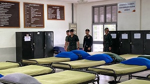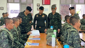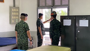 โอกาสนี้ พลตรี ไพศาล หนูสังข์ รองแม่ทัพภาคที่ 4 / รองผู้อำนวยการรักษาความมั่นคงภายในภาค 4 ส่วนหน้า ได้ตรวจเยี่ยมโรงนอนของทหารกองประจำการเพื่อดูความพร้อม และการอำนวยความสะดวกถึงความเป็นอยู่ พร้อมกล่าวพบปะกับน้อง ๆ ทหารใหม่ว่า เมื่อทหารกองประจำการ หรือน้องทหารใหม่ เข้าไปอยู่ในหน่วยฝึกทหารจะต้องได้รับการดูแลทั้งในเรื่องของหลักสูตรการฝึก และเรื่องของคุณภาพชีวิต ซึ่งเป็นไปตามนโยบายของกองทัพบก โดยผู้บัญชาการทหารบก ได้เน้นย้ำให้ดูแลน้องทหารใหม่เสมือนคนในครอบครัว เป็นน้องคนเล็กของกองทัพบก ต้องมีความเป็นอยู่ที่ดี ทั้งการดูแลด้านอาหารที่ดีมีประโยชน์ การฝึกที่ปลอดภัย และยังรวมไปถึงการส่งเสริมในด้านการต่อยอดการศึกษา เพื่อให้น้องทหารใหม่มีคุณภาพชีวิตที่ดีขึ้นในทุกด้านเมื่อก้าวเข้าสู่รั้วทหาร