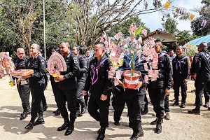 วันที่ 10 ธันวาคม 2566 เวลา 10.00 น. ที่ วัดป่าชุมทอง ตำบลภูเขาทอง อำเภอสุคิริน จังหวัดนราธิวาส พันเอก สุรศักร ทั่วด้าว ผู้บังคับหน่วยเฉพาะกิจกรมทหารพรานที่ 47 เป็นประธานในกิจกรรมทอดผ้าป่าสามัคคี เพื่อรวบรวมจตุปัจจัย นำไปบูรณะปฏิสังขรณ์ศาสนสถานภายในวัด และปรับปรุงสร้างกำแพงโบสถ์ที่ชำรุดต่าง ๆ ตลอดจนทำนุบำรุงพระพุทธศาสนา โดยมี พันเอก ภานุวัฒน์ สุคชเดช ผู้บังคับหน่วยเฉพาะกิจกรมทหารพรานที่ 49, พันเอก กฤตณ์พันธ์ กรกัน ผู้บังคับหน่วยเฉพาะกิจกรมทหารพรานที่ 11 พร้อมด้วยกำลังพลของหน่วย ส่วนราชการ และประชาชนในพื้นที่ ร่วมเป็นเจ้าภาพในกิจกรรม
