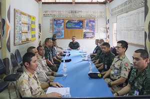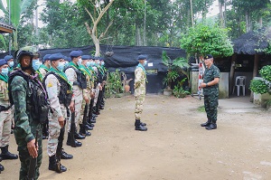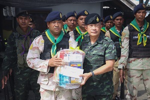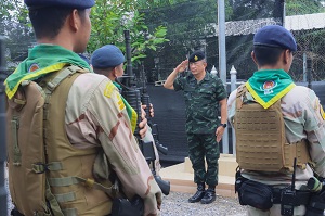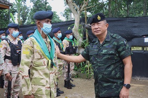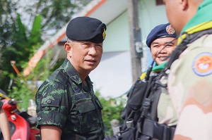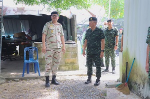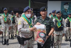 จากนั้น แม่ทัพน้อยที่ 4 / รองผู้อำนวยการรักษาความมั่นคงภายในภาค 4 ส่วนหน้า / ผู้อำนวยการศูนย์สันติวิธี และคณะฯ ลงพื้นที่ตรวจเยี่ยมชุดคุ้มตำบลในพื้นที่จังหวัดยะลา ประกอบด้วย ชุดคุ้มครองตำบลบันนังสาเรง , ชุดคุ้มครองตำบลท่าสาป , ชุดคุ้มครองตำบลยุโป พร้อมให้กำลังใจกำลังพล แนะนำแนวทางการปฏิบัติภารกิจ ซึ่งสถานการณ์ในพื้นที่ยังคงน่าเป็นห่วง ขอให้ปฏิบัติหน้าที่อย่างระมัดระวัง ไม่ประมาท มีสติ รอบคอบ นำข้อสั่งการของผู้บังคับบัญชามาปฏิบัติอย่างเคร่งครัด หมั่นซักซ้อมแผนเผชิญเหตุอยู่เสมอ ต้องมีความพร้อมในการปฏิบัติหน้าที่ ไม่ว่าจะเป็นการลาดตระเวนรอบฐาน หรือการเข้าเวรยาม และควรปรับเปลี่ยนเวลาการปฏิบัติภารกิจอยู่สม่ำเสมอ เพื่อความปลอดภัยของกำลังพลเองและพี่น้องประชาชน เชื่อมั่นว่าที่ผ่านมาชุดคุ้มตำบลได้ปฏิบัติหน้าที่อย่างเต็มขีดความสามารถ และสามารถปกป้อง ดูแลพี่น้องประชาชนให้เกิดความปลอดภัยอย่างดีที่สุด และชื่นชมการปฏิบัติหน้าที่ของชุดคุ้มครองตำบล ที่สามารถปฏิบัติงานได้อย่างมีประสิทธิภาพ มีความเข้มแข็ง และสามารถควบคุมพื้นที่รับผิดชอบของตนเองได้ในทุกมิติ นอกจากนี้ยังได้มอบเครื่องอุปโภคบริโภคให้กับฐานปฏิบัติการชุดคุ้มครองตำบล เพื่อเป็นขวัญและกำลังใจในการปฏิบัติงานต่อไป