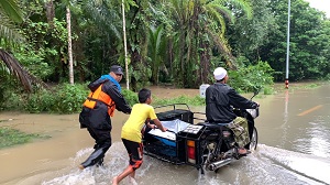 วันนี้ (14 ธันวาคม 2566) เวลา 10.00 น. หน่วยเฉพาะกิจกรมทหารพรานที่ 45 จัดกำลังพล เร่งช่วยเหลือขนย้ายสิ่งของให้กับประชาชนหนีน้ำท่วมฉับพลัน เนื่องจากฝนตกหนักและติดต่อกันหลายวัน ทำให้ในพื้นที่บ้านบาโงสรายอ (บ้านย่อยบาโงกูโบ) หมู่ที่ 6 ตำบลบองอ อำเภอระแงะ จังหวัดนราธิวาส เกิดน้ำท่วมฉับพลันโดยมีประชาชนในพื้นที่ที่ได้รับผลกระทบจากอุทกภัยได้แจ้งขอความช่วยเหลือกับเจ้าหน้าที่ทหารในพื้นที่