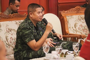 โอกาสนี้ พลตรี ไพศาล หนูสังข์ รองแม่ทัพภาคที่ 4 / รองผู้อำนวยการรักษาความมั่นคงภายในภาค 4 ส่วนหน้า กล่าวว่า กองอำนวยการรักษาความมั่นคงภายในภาค 4 ส่วนหน้า ได้จัดการปฐมนิเทศฯในครั้งนี้ขึ้น เพื่อเป็นการเสริมสร้างความรู้ ความเข้าใจให้กับผู้บังคับหน่วย ระดับผู้บังคับกองร้อยและผู้บังคับหมวด ทั้งฝ่ายปกครอง ตำรวจ ทหาร ได้รับทราบข้อมูลเกี่ยวกับสถานการณ์ที่เกิดขึ้นในปัจจุบันทั้งด้านการเมือง และการทหาร, นโยบายของผู้อำนวยการรักษาความมั่นคงภายในภาค 4 ที่เป็นนโยบายหลักคือการป้องกันและแก้ไขปัญหายาเสพติดในพื้นที่ โดยเฉพาะผู้เสพที่จะต้องนำเข้าสู่การบำบัดยาเสพติดอย่างเร่งด่วน ตลอดจนรับทราบแนวทางในการปฏิบัติงานตามแผนเสริมสร้างสันติสุขจังหวัดชายแดนภาคใต้ ประจำปีงบประมาณ 2567 ทั้งนี้ ตามที่ผู้เข้าร่วมปฐมนิเทศได้ระดมความคิด เสนอแนะแนวทาง ตลอดจนความคิดเห็นต่าง ๆ เพื่อขับเคลื่อนงานในแต่ละพื้นที่ที่เกี่ยวข้อง ซึ่งล้วนแต่เป็นเนื้อหาที่มีประโยชน์ต่อผู้ปฏิบัติงาน ที่จะนำไปประยุกต์ให้เกิดประโยชน์สูงสุด ขอเน้นย้ำกำลังพลทุกท่านนำความรู้ที่ได้รับไปวางแผนชี้แจง สั่งการสร้างความตระหนักรู้ให้กับกำลังพล ผู้ปฏิบัติงานภายใต้การบังคับบัญชาของตนเอง เพื่อให้การแก้ไขปัญหาจังหวัดชายแดนภาคใต้เกิดประสิทธิภาพสูงสุด