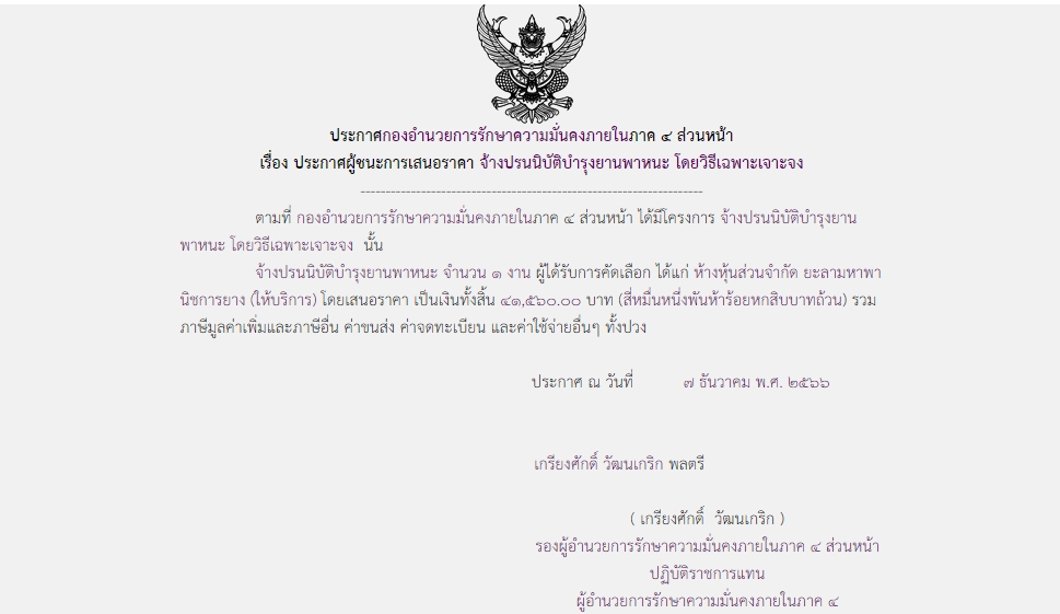 จัดซื้อ จัดจ้างประกาศผู้ชนะการเสนอราคา ประกาศผู้ชนะการเสนอราคา จ้างปรนนิบัติบำรุงยานพาหนะ โดยวิธีเฉพาะเจาะจง December 14, 2023 594 Share Facebook Twitter Google+ Telegram LINE