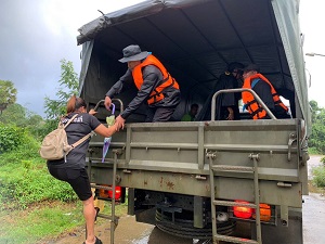 วันนี้ (15 ธันวาคม 2566) เวลา 08.00 น. หน่วยเฉพาะกิจกรมทหารพรานที่ 45 จัดกำลังพลกองร้อยหน่วยขึ้นตรง ร่วมกับ ผู้นำท้องที่ ผู้นำท้องถิ่น ลงพื้นที่ติดตามสถานการณ์อุทกภัยในพื้นที่ และออกช่วยเหลือพี่น้องประชาชนที่ประสบอุทกภัยในเขตพื้นที่รับผิดชอบ อำเภอระแงะ จังหวัดนราธิวาส โดยใช้ยานพาหนะของหน่วยในการ รับ-ส่ง ผู้ประสบอุทกภัยเดินทาง เข้า-ออกในหมู่บ้าน เพื่ออำนวยความสะดวกและบรรเทาความเดือดร้อนในการออกไปทำธุระประจำวัน ตลอดจนให้เฝ้าระวังติดตามสถานการณ์น้ำอย่างใกล้ชิด จึงขอให้ประชาชนในพื้นที่ได้ติดตามข่าวสารจากหน่วยงานราชการในพื้นที่อย่างใกล้ชิด เพื่อเฝ้าระวังสถานการณ์น้ำท่วมฉับพลันในพื้นที่ และหากพื้นที่ใดเกิดเหตุภัยพิบัติก็สามารถแจ้งขอความช่วยเหลือไปยังหน่วยทหารในพื้นที่ใกล้บ้านได้ตลอด 24 ชั่วโมง “เพราะทหารพร้อมจะอยู่เคียงข้างประชาชนในทุกโอกาส”
