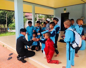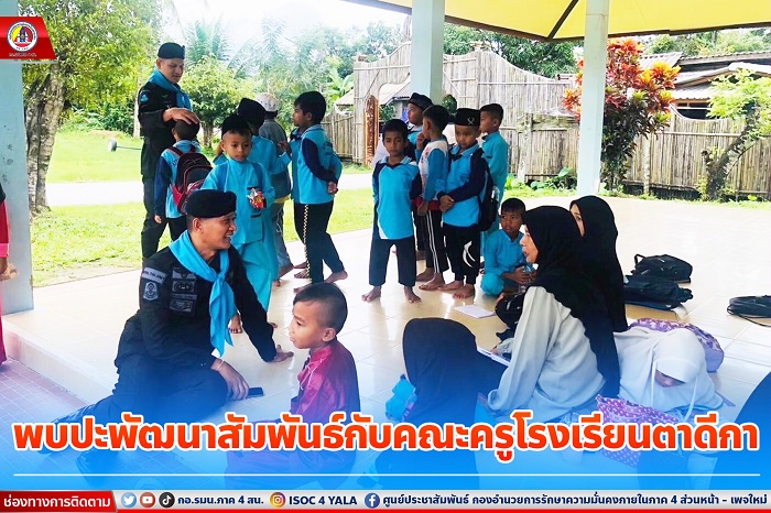 ทั้งนี้ครูตาดีกาและนักเรียนให้การต้อนรับและพูดคุยกันอย่างอบอุ่น ซึ่งทางครูและนักเรียนได้ขอสนับสนุนธงชาติและอุปกรณ์กีฬา สร้างรอยยิ้มและความประทับใจ อีกทั้งยังเป็นการสร้างความสัมพันธ์อันดีระหว่างเจ้าหน้าที่กับเยาวชนในพื้นที่ อันจะนำไปสู่การอยู่ร่วมกันภายใต้สังคมพหุวัฒนธรรมที่เข้มแข็ง รวมถึงสร้างสันติสุขที่ยั่งยืน “เพราะเราคือพี่น้องกัน”