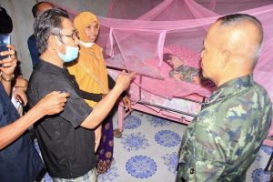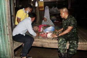 จากนั้น ผู้บังคับหน่วยเฉพาะกิจยะลา พร้อมด้วย ผู้บังคับหน่วยเฉพาะกิจกรมทหารพรานที่ 47, กำนัน, ผู้ใหญ่บ้านฯ, อาสาสมัครสาธารณสุขประจำหมู่บ้าน (อสม.) และบัณฑิตอาสาฯ ลงพื้นที่ไปพบปะเยี่ยมเยียนผู้ป่วยติดเตียง และผู้พิการ ในพื้นที่ตำบลกาตอง อำเภอยะหา จังหวัดยะลา จำนวน 3 ราย ประกอบด้วย นายฟุรกอน อุมาร์ อายุ 20 ปี ผู้พิการตั้งแต่กำเนิด พักอาศัยอยู่ บ้านเลขที่ 21/2 หมู่ที่ 3 บ้านบูเก๊ะฆลูโฆ, นายดิง มาฮะ อายุ 18 ปี ผู้พิการด้วยโรคกล้ามเนื้ออ่อนแรง พักอาศัยอยู่ บ้านเลขที่ 98/2 หมู่ที่ 4 บ้านเจาะตาแม และ นางแม๊ะซง สามาเอ อายุ 92 ปี ผู้พิการด้วยอาการป่วยจากโรคชรา พักอาศัยอยู่ บ้านเลขที่ 98/2 หมู่ที่4 บ้านเจาะตาแม โดยในการเยี่ยมดังกล่าว พลตรี อุทิศ อนันตนานนท์ ผู้บังคับหน่วยเฉพาะกิจยะลา ได้มอบถุงยังชีพให้กับประชาชน ตามโครงการ “หน่วยเฉพาะกิจยะลา ใส่ใจ ห่วงใย ประชาชนกลุ่มเปราะบาง” เพื่อนำไปใช้ในการดำเนินชีวิตประจำวัน ทำให้ประชาชนในพื้นที่ต่างรู้สึกปราบปลื้มเป็นอย่างมากในการช่วยเหลือจากเจ้าหน้าที่ของรัฐ