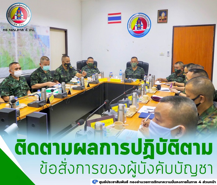วันนี้ ( 5 พฤศจิกายน 2563 ) เวลา 10.00 น. ที่ ศูนย์ประสานงานด้านนโยบายและยุทธศาสตร์ กองอำนวยการรักษาความมั่นคงภายในภาค 4 ส่วนหน้า ค่ายสิรินธร ตำบลเขาตูม อำเภอยะรัง จังหวัดปัตตานี พลโท วาสิฏฐ์ มณีโชติ ผู้อำนวยการศูนย์ประสานการปฏิบัติที่ 5 กองอำนวยการรักษาความมั่นคงภายในราชอาณาจักร และคณะ เดินทางติดตามลงพื้นที่ ติดตามผลการปฏิบัติตามนโยบายและข้อสั่งการของผู้บังคับบัญชา เพื่อหารือเกี่ยวกับแนวทางการขับเคลื่อนงานตามนโยบาย และรับทราบปัญหาข้อขัดข้องที่ต้องแก้ไขในระดับนโยบายของส่วนกลาง โดยคณะได้รับฟังการบรรยายสรุปแนวทางการปฏิบัติงานของ ศูนย์ประสานงานด้านนโยบายและยุทธศาสตร์ กองอำนวยการรักษาความมั่นคงภายในภาค 4 ส่วนหน้า ในปีงบประมาณ 2564 โดยมี พันเอก ประวีร์ ชิณวงศ์พรหม รองผู้อำนวยการศูนย์ประสานงานด้านนโยบายและยุทธศาสตร์ กองอำนวยการรักษาความมั่นคงภายในภาค 4 ส่วนหน้า และผู้บังคับบัญชาที่เกี่ยวข้องเข้าร่วมประชุม