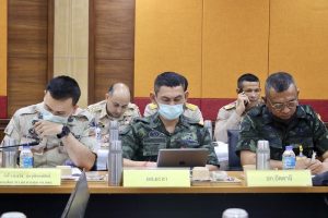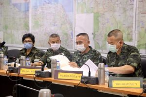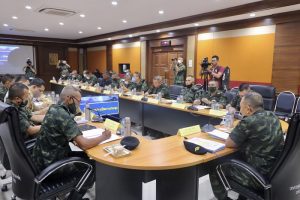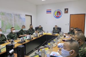 จากนั้นเวลา 13.30 น. ผู้อำนวยการศูนย์ประสานการปฏิบัติที่ 5 กองอำนวยการรักษาความมั่นคงภายในราชอาณาจักรและคณะ ได้เดินทางต่อไปยังกองบังคับการควบคุม อส.จชต. ค่ายสิรินธร ตำบลเขาตูม อำเภอยะรัง จังหวัดปัตตานี เพื่อรับฟังการบรรยายสรุปแนวทางการปฏิบัติงานและแนวทางการเสริมสร้างความเข้มแข็งของ อส.จชต. ในปีงบประมาณ 2564 พร้อมรับทราบปัญหาข้อขัดข้องที่ต้องแก้ไขในระดับนโยบายของส่วนกลาง โดยมี พลตรี สมดุลย์ เอี่ยมเอก รองแม่ทัพภาคที่ 4 / ผู้อำนวยการกองบังคับการควบคุม อส.จชต.พร้อมด้วย ผู้แทนกองอำนวยการรักษาความมั่นคงภายในจังหวัดยะลา, ผู้แทนกองอำนวยการรักษาความมั่นคงภายในจังหวัดสงขลา เจ้าหน้าที่หน่วยขึ้นตรง ของ ศูนย์ประสานการปฏิบัติที่ 5 และผู้ที่เกี่ยวข้องเข้าร่วมประชุม