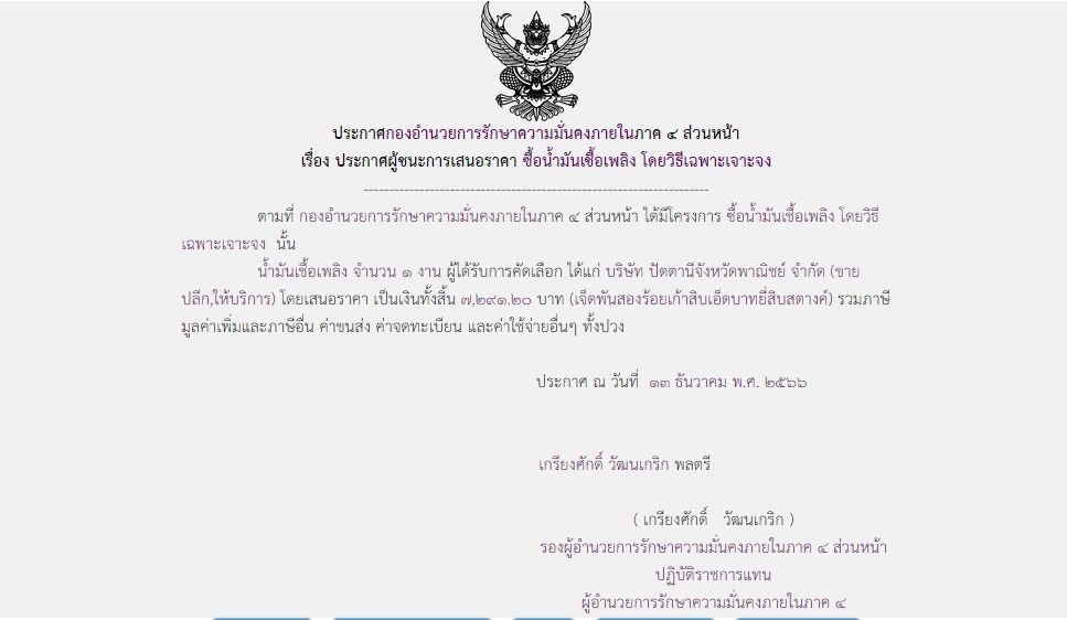 จัดซื้อ จัดจ้างประกาศผู้ชนะการเสนอราคา ประกาศผู้ชนะการเสนอราคา ซื้อน้ำมันเชื้อเพลิง โดยวิธีเฉพาะเจาะจง December 22, 2023 400 Share Facebook Twitter Google+ Telegram LINE