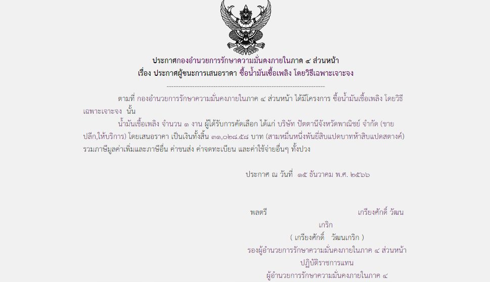 จัดซื้อ จัดจ้างประกาศผู้ชนะการเสนอราคา ประกาศผู้ชนะการเสนอราคา ซื้อน้ำมันเชื้อเพลิง โดยวิธีเฉพาะเจาะจง December 22, 2023 339 Share Facebook Twitter Google+ Telegram LINE