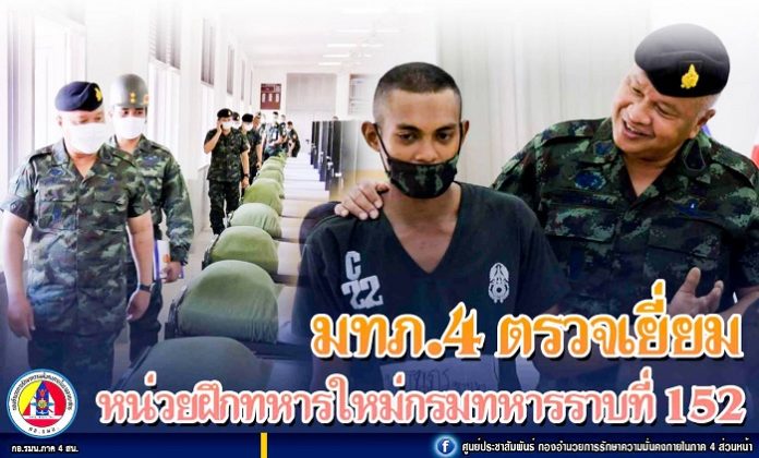 สำหรับการตรวจเยี่ยมหน่วยฝึกทหารใหม่ ผลัดที่ 2 ประจำปี 2563 ในสังกัดกรมทหารราบที่ 152 แม่ทัพภาคที่ 4 ได้เรียกประชุมผู้ฝึก ครูฝึก ตลอดจน ผู้ช่วยครูฝึก เพื่อรับฟังนโยบาย ในการฝึกทหารใหม่ ให้เป็นไปตามระเบียบการฝึกทหารใหม่จากกรมยุทธศึกษาทหารบก และมาตรการการควบคุมโรคจากกระทรวงสาธารณสุข โดยกำชับให้ผู้บังคับหน่วยดูแลเอาใจใส่ทหารใหม่ในทุกราย ให้ปฏิบัติตามนโยบายการพัฒนาคุณภาพชีวิตทหาร กองประจำการ เพื่อปูพื้นฐานให้พร้อมเป็นกำลังพลของกองทัพบก ที่สามารถปฏิบัติภารกิจทางทหาร และภารกิจช่วยเหลือประชาชนได้อย่างมีประสิทธิภาพ ที่สำคัญให้หน่วยฝึกทหารใหม่ระมัดระวังเรื่องสภาพอากาศร้อนและสุขภาพของทหารใหม่ ระหว่างทำการฝึก โดยแม่ทัพภาคที่ 4 กล่าวว่า “อยากให้ผู้ฝึก ใส่ใจดูแล เช็คสภาพความพร้อมของพลทหารอยู่ตลอดเวลา ด้วยการจดบันทึก และประเมินผล ใครเป็นอะไร พร้อมส่วนไหนไม่พร้อมส่วนไหนผู้ฝึกต้องทราบ และประสานพูดคุยกับครอบครัวเพื่อความสบายใจ ฝึกฝนน้อง ๆ ด้วยการปลุกความกล้า ค้นหาความเป็นตัวตนของน้อง ๆ ทหารใหม่มา เพื่อสร้างคุณประโยชน์ให้แก่กองทัพต่อไป เปลี่ยนทัศนคติที่ดีให้เกิดขึ้นในจิตใจของน้องๆ เปลี่ยนความคิดจากการเป็นพลเรือน ให้มีจิตใจเป็นทหารอย่างเต็มภาคภูมิ รักในสถาบัน ชาติ ศาสนา พระมหากษัตริย์”