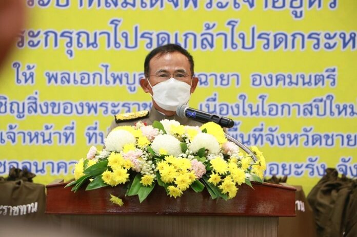 ในการนี้ พลเอก ไพบูลย์ คุ้มฉายา องคมนตรี ได้เชิญพระราชกระแสความห่วงใยของพระบาทสมเด็จพระเจ้าอยู่หัว กล่าวกับเจ้าหน้าที่ผู้ปฏิบัติงานในพื้นที่จังหวัดชายแดนภาคใต้และกองกำลังชายแดน เพื่อเป็นขวัญและกำลังใจแก่เจ้าหน้าที่ นับเป็นพระมหากรุณาธิคุณ ที่พระองค์ทรงห่วงใย พระราชทานของขวัญปีใหม่แก่เจ้าหน้าที่หน่วยกองกำลังชายแดน ซึ่งมีภารกิจบทบาทในการรักษาความสงบเรียบร้อยและสนับสนุนในภารกิจต่าง ๆ ของบ้านเมืองให้มีความเป็นอยู่ที่ดี และนอกจากนี้พระองค์ท่านทรงรับสั่งถึงความปลอดภัยของเจ้าหน้าที่ และให้นำบทเรียนความผิดพลาดที่ผ่านมาเป็นบทเรียน ทรงชื่นชมในความตั้งใจและความเสียสละ ในการปฏิบัติงานของเจ้าหน้าที่ ซึ่งส่งผลให้บ้านเมืองเกิดความสงบสุข และในวันที่ 31 ธันวาคม ของทุกปี พระบาทสมเด็จพระเจ้าอยู่หัว ทรงพระราชทานพรปีใหม่ ให้กับพสกนิกรชาวไทยทั้งหลาย พร้อมอัญเชิญคำอวยพรปีใหม่มอบให้แก่กำลังพลความว่า “ขอให้คนไทย มีความสุขกายสุขใจ มีสติปัญญาแจ่มใส เข้มแข็งสุขภาพร่างกายแข็งแรง ประสบแต่ความสุขความเจริญ โดยทั่วกัน คนไทยเรานั้นมีน้ำใจไมตรีต่อกัน ช่วยเหลือเกื้อกูลกันในทุกเรื่องที่เกิดขึ้น คนไทยต่างพร้อมร่วมมือร่วมใจปัดเป่า ความทุกข์ยากเดือดร้อน ให้กำลังใจปลอบโยนซึ่งกันและกันเพื่อให้ความทุกข์ยากนั้นผ่อนคลายและบรรเทาลง“ ยังความปลื้มปิติ และสำนึกในพระมหากรุณาธิคุณ แก่เจ้าหน้าที่ กำลังพล ที่ปฏิบัติหน้าที่ในพื้นที่ชายแดนภาคใต้อย่างหาที่สุดมิได้
