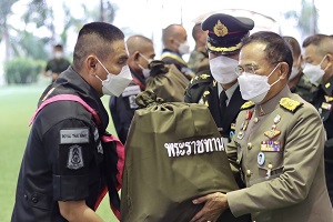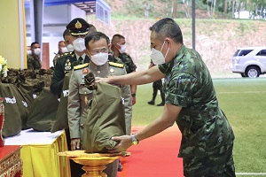 วันที่ 22 ธันวาคม 2566 เวลา 08.45 ณ สนามฟุตซอลนาควานิช กองอำนวยการรักษาความมั่นคงภายในภาค 4 ส่วนหน้า ค่ายสิรินธร ตำบลเขาตูม อำเภอยะรัง จังหวัดปัตตานี พระบาทสมเด็จพระเจ้าอยู่หัว และสมเด็จพระนางเจ้าฯ พระบรมราชินี ทรงพระกรุณาโปรดเกล้าโปรดกระหม่อม ให้ พลเอก ไพบูลย์ คุ้มฉายา องคมนตรี และคณะ เชิญสิ่งของพระราชทาน เนื่องในโอกาสปีใหม่ 2567 มอบแก่เจ้าหน้าที่ ที่ปฏิบัติภารกิจกองกำลังชายแดนในพื้นที่จังหวัดชายแดนภาคใต้ จำนวน 650 ชุด เนื่องในโอกาสปีใหม่ 2567 โดยมี นางพาตีเมาะ สะดียามู ผู้ว่าราชการจังหวัดปัตตานี กล่าวต้อนรับ จากนั้น พลตรี เกรียงศักดิ์ วัฒนเกริก รองผู้อำนวยการรักษาความมั่นคงภายในภาค 4 ส่วนหน้า กล่าวสำนึกในพระมหากรุณาธิคุณ โดยมี ผู้ว่าราชการจังหวัดยะลา,ปัตตานี, นราธิวาส,ผู้แทนจากกองอำนวยการรักษาความมั่นคงภายในภาค 4 ส่วนหน้า, ผู้แทนจากศูนย์อำนวยการบริหารจังหวัดชายแดนภาคใต้, ผู้แทนจากกองกำลังตำรวจจังหวัดชายแดนภาคใต้ ตลอดจน ทหาร ตำรวจ และฝ่ายปกครอง เข้าร่วมฯ