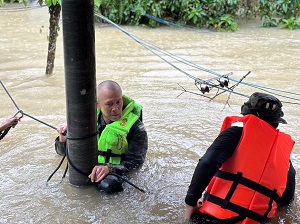 เมื่อวันที่ 25 ธันวาคม 2566 ที่ หมู่ 3 ตำบลตันหยงมัส อำเภอระแงะ จังหวัดนราธิวาส พลตรี เฉลิมพร ขำเขียว ผู้บัญชาการกองพลทหารราบที่ 15/ผู้บังคับหน่วยเฉพาะกิจนราธิวาส พร้อมด้วย พันเอก ทรงเดช สุกนุ้ย รองผู้บังคับหน่วยเฉพาะกิจนราธิวาส นำกำลังพลและยุทโธปกรณ์ รุดลงพื้นที่ เข้าช่วยเหลือพี่น้องประชาชนผู้ประสบอุทกภัยน้ำท่วม ในพื้นที่ โดยได้ช่วยเคลื่อนย้ายสิ่งของจำเป็นขึ้นที่สูง พร้อมอพยพพี่น้องประชาชนออกจากพื้นที่น้ำท่วมสูง ไปอยู่ในพื้นที่สำหรับผู้ประสบภัย จนกว่าระดับน้ำจะลดลง พร้อมทั้ง มอบอาหาร น้ำดื่ม และของใช้จำเป็นให้กับประชาชนที่ได้รับผลกระทบ เพื่อบรรเทาความเดือดร้อนเบื้องต้นให้แก่พี่น้องประชาชน เนื่องจากหมู่บ้านดังกล่าวถือว่าอยู่ในพื้นที่ลุ่มต่ำ มีสภาวะน้ำท่วมเพิ่มสูงขึ้นอย่างรวดเร็ว จากผลพวงของคลองตันหยงมัส ที่มวลน้ำกำลังระบายลงสู่แม่น้ำบางนรา โดยพลตรี เฉลิมพร ขำเขียว พบปัญหาในการให้ความช่วยเหลือชาวบ้านที่ประสบอุทกภัย เจ้าหน้าที่มียุทโธปกรณ์ไม่เพียงพอต่อการช่วยเหลืออพยพพี่น้องประชาชน จึงได้สั่งการประสานงานหน่วยงานที่เกี่ยวข้อง เพื่อขอความสนับสนุน เครื่องมือยุทโธปกรณ์ อาทิ เรือติดเครื่องยนต์ที่มีความจำเป็นต่อการช่วยเหลือพี่น้องประชาชน