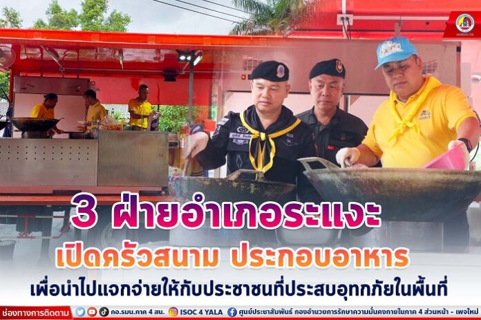 เมื่อวันที่ 26 ธันวาคม 2566 เวลา 08.00 น. พันเอก สุรศักดิ์ พึ่งแย้ม ผู้บังคับหน่วยเฉพาะกิจกรมทหารพรานที่ 45 ร่วมกับ นายวิมุตติ อํานักมณี นายอำเภอระแงะ พันตำรวจเอก อาภากร วิรูปักษ์อารักษ์ ผู้กำกับการสถานีตำรวจภูธรระแงะ และกำลังพลจิตอาสาของหน่วย เปิดครัวสนามร่วมกันประกอบอาหารปรุงสุกพร้อมรับประทาน ณ ที่ว่าการอำเภอระแงะ จังหวัดนราธิวาส เพื่อนำไปแจกจ่ายให้กับประชาชนที่ประสบอุทกภัยในพื้นที่ เพื่อบรรเทาความเดือดร้อนในการดำรงชีวิตเบื้องต้น หลังประสบภัยน้ำเข้าท่วมบ้านเรือน ทำให้ประชาชนได้รับความยากลำบากอยู่ในขณะนี้