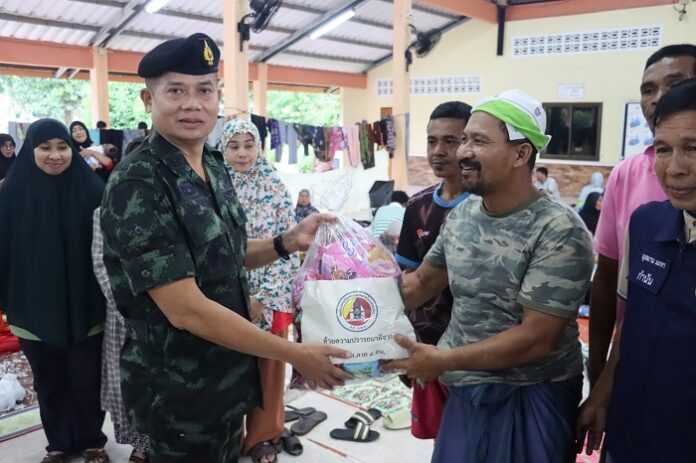 นอกจากนี้ รองแม่ทัพภาคที่ 4 /รองผู้อำนวยการรักษาความมั่นคงภายในภาค4 ส่วนหน้า ได้พบปะพี่น้องประชาชน ณ ศูนย์พักพิงชั่วคราว วิทยาลัยการอาชีพ ต.บาลอ อ.รามัน จ.ยะลา สอบถามและให้กำลังใจพี่น้องประชาชน กำชับเจ้าหน้าที่ หน่วยแพทย์เคลื่อนที่ รวมถึงกำลังพลจิตอาสาพระราชทาน ให้ดูแลเรื่องสุขภาพและอาหารการกินให้ดีที่สุด ตลอดจนให้ติดตามสถานการณ์น้ำอย่างต่อเนื่อง เพื่อเตรียมความพร้อมรับมือภัยพิบัติต่างๆ ในการออกช่วยเหลือพี่น้องประชาชนอย่างทันท่วงที โดยประชาชนสามารถแจ้งขอรับความช่วยเหลือได้โดยตรงที่ศูนย์บรรเทาสาธารณภัยกองทัพภาคที่ 4 โทร 075-383-405 หรือหน่วยทหารในพื้นที่ได้ตลอด 24 ชั่วโมง