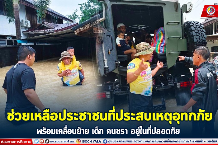 เมื่อวันที่ 25 ธันวาคม 2566 เวลา 07.00 น. กองร้อยหน่วยเฉพาะกิจตำรวจนราธิวาส 932 (ร้อยฉก.ตร.นราธิวาส 932) จัดกำลังพลของหน่วยฯ พร้อมด้วย รถหุ้มเกราะลำเลียงพล ล้อยาง Reva จำนวน 1 คัน ลงพื้นที่ไปยังตำบลบางปอ ,ตำบลมะนังตายอ อำเภอเมือง จังหวัดนราธิวาส เพื่อออกให้การช่วยเหลือประชาชนที่ประสบอุทกภัย พร้อมช่วยเคลื่อนย้ายสิ่งของขึ้นที่สูง ตลอดจนช่วยเหลือเคลื่อนย้ายผู้ป่วยติดเตียง เด็ก และคนชรา อยู่ในที่ปลอดภัย ทั้งนี้ทางหน่วยเฉพาะกิจตำรวจนราธิวาส 932 เตรียมพร้อมที่จะเข้าช่วยเหลือประชาชนตลอด 24 ชั่วโมง