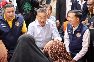 เมื่อวันที่ 26 ธ.ค.66 เวลา 16.00 น. ณ ศูนย์พักพิง ที่ว่าการอำเภอระแงะ จังหวัดนราธิวาส นายเศรษฐา ทวีสิน นายกรัฐมนตรี และคณะฯ เดินทางลงพื้นที่จังหวัดชายแดนภาคใต้ เพื่อติดตามสถานการณ์อุทกภัย และตรวจเยี่ยมประชาชนที่ได้รับผลกระทบจากอุทกภัยในพื้นที่ ตำบลตันหยงมัส อำเภอระแงะ จังหวัดนราธิวาส โดยมี พลตรี ไพศาล หนูสังข์ รองแม่ทัพภาคที่ 4/รองผู้อำนวยการรักษาความมั่นคงภายในภาค 4 ส่วนหน้า , ว่าที่ร้อยตรี ตระกูล โทธรรม ผู้ว่าราชการจังหวัดนราธิวาส,พลตรี เฉลิมพร ขำเขียว ผู้บังคับหน่วยเฉพาะกิจนราธิวาส , ปลัดอำเภอระแงะ ,หัวหน้าส่วนราชการ ,ผู้นำท้องถิ่น ,เจ้าหน้าที่ทหาร ตำรวจ ตลอดจน ประชาชนในพื้นที่ ร่วมให้การต้อนรับ