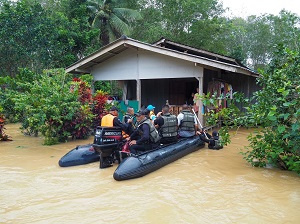 เมื่อวันที่ 26 ธันวาคม 2566 เวลา 10.00 น. หน่วยเฉพาะกิจกรมทหารพรานที่ 43 จัดกำลังพลของหน่วย พร้อมด้วย ชุดจิตอาสาฯ ลงพื้นที่ช่วยเหลือประชาชนที่ประสบภัยน้ำท่วมในพื้นที่ หมู่ที่ 2 บ้านคูระ ตำบลม่วงเตี้ย อำเภอแม่ลาน จังหวัดปัตตานี ทั้งนี้ ได้มอบน้ำดื่มเพื่อบรรเทาความเดือดร้อนเบื้องต้นให้กับประชาชนที่ได้รับผลกระทบจากภัยน้ำท่วม จำนวน 45 ครัวเรือน ตลอดจนให้เฝ้าระวังสถานการณ์น้ำท่วมอย่างต่อเนื่อง เพื่อเตรียมความพร้อมในการรับมือภัยพิบัติต่างๆ รวมถึงแนะนำการดูแลสุขภาพช่วงฤดูฝน