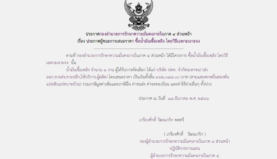 จัดซื้อ จัดจ้างประกาศผู้ชนะการเสนอราคา ประกาศผู้ชนะการเสนอราคา ซื้อน้ำมันเชื้อเพลิง โดยวิธีเฉพาะเจาะจง December 27, 2023 392 Share Facebook Twitter Google+ Telegram LINE