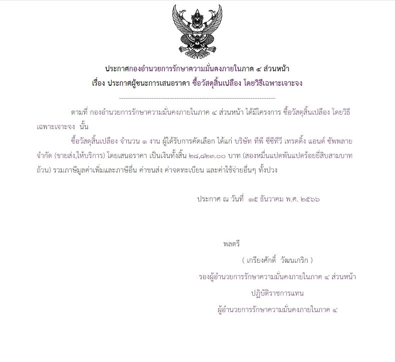 จัดซื้อ จัดจ้างประกาศผู้ชนะการเสนอราคา ประกาสผู้ชนะการเสนอราคา ซื้อวัสดุสิ้นเปลือง โดยวิธีเฉพาะเจาะจง December 30, 2023 392 Share Facebook Twitter Google+ Telegram LINE