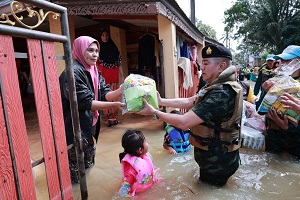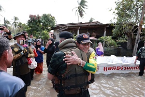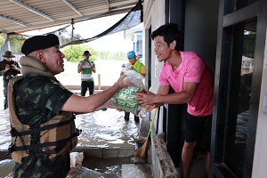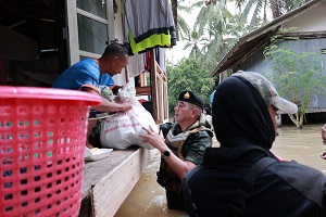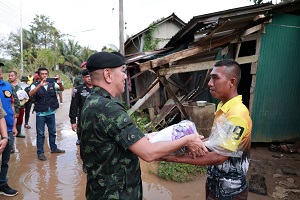 แม่ทัพภาคที่ 4 กล่าวว่า “สถานการณ์น้ำท่วมในพื้นที่ตำบลปะกาฮารัง อำเภอเมือง จังหวัดปัตตานี กองทัพภาคที่ 4 ได้ให้หน่วยเฉพาะกิจกรมทหารพรานที่ 43, กองพันทหารราบที่ 3 กรมทหารราบที่ 153 และหน่วยเฉพาะกิจปัตตานีเข้าพื้นที่ช่วยเหลือประชาชนตั้งแต่วันแรก เพราะเป็นพื้นที่รับน้ำในทุกปี แต่ครั้งนี้นับว่าหนักสุดในรอบหลายปี โดยได้เข้าช่วยเหลือพี่น้องประชาชนทั้ง มอบถุงยังชีพ และจัดหาน้ำดื่ม ยาสามัญ และสิ่งของจำเป็นอื่น ๆ เพื่อบรรเทาความเดือนร้อนในขั้นต้นแล้ว กองทัพภาคที่ 4 ได้มีการบูรณาการร่วมกับทุกภาคส่วน เพื่อให้การช่วยเหลือพี่น้องประชาชนเป็นไปอย่างทั่วถึง และรวดเร็ว และได้จัดหาอาหาร น้ำดื่ม พร้อมทั้งเครื่องใช้จำเป็นเร่งด่วนที่สุด และในขณะที่หน่วยทหารที่ได้ลงพื้นที่มาช่วยเหลือพี่น้องประชาชนนั้น ก็ทราบว่ามีบ้านเรือนของกำลังพลที่อยู่ในพื้นที่ได้รับความสียหายเช่นกัน ขอให้ทุกหน่วยได้เร่งสำรวจกำลังพลที่ได้รับความเดือนร้อน และเข้าช่วยเหลืออย่างเต็มที่ด้วยเช่นกัน ขอให้หน่วยกระจายความช่วยเหลือไปให้ทั่วถึงยังผู้ประสบภัยทุกคน หากไม่สามารถออกมารับได้ จำเป็นต้องใช้เรือแจกจ่ายตามบ้านแม้เสียเวลาหน่อยก็ต้องทำ และหลังจากสถานการณ์ดีขึ้นน้ำลดระดับลง การฟื้นฟูจะเริ่มขึ้นทันที เพื่อให้พี่น้องประชาชนได้กลับไปยังที่พักอาศัยของตนได้อย่างรวดเร็วที่สุด ขอบคุณทุกคนที่ช่วยกันในทุก ๆ สถานการณ์ เชื่อว่าเราต้องผ่านวิกฤตครั้งนี้ไปได้ด้วยกัน