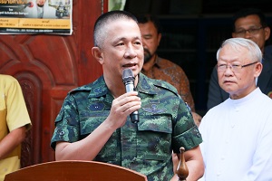 พลโท ปราโมทย์ พรหมอินทร์ แม่ทัพน้อยที่ 4 / รองผู้อำนวยการรักษาความมั่นคงภายในภาค 4 ส่วนหน้า กล่าวว่า เรื่องของสถานการณ์ภัยพิบัติทางกองทัพภาคที่ 4 ได้มีการเตรียม ความพร้อมของศูนย์บรรเทาสาธารณภัยกองทัพภาคที่ 4 ตั้งแต่เกิดเหตุอุทกภัยคืนวันที่ 24 ธันวาคม 2566 และเช้าวันที่ 25 ทางหน่วยทหารได้ส่งกำลังเจ้าหน้าที่ลงไปช่วยเหลือดูแลประชาชน ทั้งนี้ได้มีการบูรณาการกำลังทุกภาคส่วนร่วมกัน ทั้งภาครัฐภาคเอกชน และภาคประชาชน ในการเข้าไปให้ความช่วยเหลือประชาชนที่ได้รับผลกระทบจากอุทกภัย และสำหรับกิจกรรมโครงการครั้งนี้ถือเป็นความเสียสละของภาคเอกชนที่ได้ร่วมกันให้ความสำคัญของประชาชนที่มาร่วมเติมเต็มให้ความช่วยเหลือประชาชนอีกทางหนึ่ง และหลังจากนี้ได้มีการเตรียมแผนบูรณาการบูรณะฟื้นฟูให้ความช่วยเหลือประชาชน ทั้ง ภาครัฐและเอกชน ประกอบด้วย กองทัพภาคที่ 4 กองอำนวยการรักษาความมั่นคงภายในภาค 4 ส่วนหน้า ตำรวจภูธรภาค 9 และฝ่ายปกครอง ด้วยการจัดกำลังพลทีมช่าง เข้าไปซัพพอร์ตแต่ละจังหวัดพื้นที่ ในการฟื้นฟูความเดือดร้อนของพี่น้องประชาชนให้กลับเข้าสู่ภาวะปกติโดยเร็วที่สุด