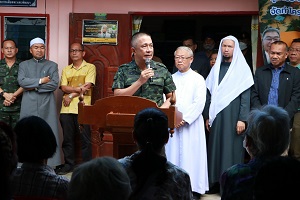 วันที่ 3 มกราคม 2567 เวลา 09.40 น. ณ สำนักงานสมาคมผู้นำอิสลามชายแดนใต้ ตำบลสะเตง อำเภอเมือง จังหวัดยะลา พลโท ปราโมทย์ พรหมอินทร์ แม่ทัพน้อยที่ 4 / รองผู้อำนวยการรักษาความมั่นคงภายในภาค 4 ส่วนหน้า เป็นประธานเปิดโครงการช่วยเหลือผู้ประสบอุทกภัยจังหวัดชายแดนภาคใต้ เพื่อมอบ ถุงยังชีพให้กับประชาชนผู้ได้รับผลกระทบ ซึ่งจัดขึ้นโดยสมาคมผู้นำอิสลามชายแดนใต้ ร่วมกับ กองอำนวยการรักษาความมั่นคงภายในภาค 4 ส่วนหน้า, หอการค้าจังหวัดยะลา, มูลนิธิอะมีรุลมุอ์มินีนยะลา และภาคีเครือข่าย ได้ร่วมกันจัดขึ้น และมอบถุงยังชีพช่วยเหลือประชาชนผู้ได้รับผลกระทบจากสถานการณ์อุทกภัยในพื้นที่จังหวัดชายแดนภาคใต้ ได้แก่ จังหวัดยะลา ปัตตานี นราธิวาส และ4 อำเภอของจังหวัดสงขลา โดยมี นายฮัสบูเล๊าะ หิเล นายกสมาคมผู้นำอิสลามชายแดนใต้, นายกันตพงษ์ ลิ่มกาญจนา ประธานหอการค้าจังหวัดยะลา, พลตรี นิติ ติณสูลานนท์ ผู้บังคับหน่วยเฉพาะกิจยะลา, ดร.วิสุทธิ์ บินลาเต๊ะ ที่ปรึกษาสมาคมผู้นำอิสลามชายแดนใต้ พร้อมด้วย ผู้นำศาสนา ทั้ง 4 ศาสนา ประกอบด้วย ศาสนาอิสลาม ศาสนาพุทธ ศาสนาคริสต์ และศาสนาซิกข์ และ หัวหน้าส่วนราชการ ภาครัฐ ภาคเอกชนที่เกี่ยวข้อง ประชาชนผู้ได้รับผลกระทบเข้าร่วม