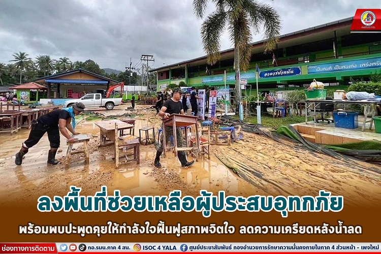 หน่วยเฉพาะกิจกรมทหารพรานที่ 45 โดยชุดปฏิบัติการกิจการพลเรือน ร่วมกับผู้นำท้องที่/ท้องถิ่น และทุกภาคส่วนในพื้นที่ เข้าช่วยเหลือทำความสะอาดโรงเรียน บ้านเรือนประชาชนที่ได้รับผลกระทบจากน้ำป่า ตัดต้นไม้ที่ล้มกีดขวางการจราจรอำนวยความสะดวก รับ-ส่ง ประชาชนเข้า-ออกในหมู่บ้านเพื่อบรรเทาความเดือดร้อนในการออกไปทำธุระประจำวัน พร้อมทั้งได้พบปะพูดคุยให้กำลังใจฟื้นฟูสภาพจิตใจ ลดความเครียดหลังน้ำลด และมอบอาหารปรุงสุกพร้อมรับประทาน ถุงยังชีพ สิ่งของอุปโภคบริโภค ข้าวสารอาหารแห้ง น้ำดื่ม ยาสามัญประจำบ้าน ให้กับผู้ประสบอุทกภัยน้ำท่วมในพื้นที่ เพื่อเป็นการบรรเทาความเดือดร้อนเบื้องต้น ตลอดจนได้แนะนำวิธีการดูแลรักษาสุขภาพ ให้กับประชาชน ในพื้นที่ อำเภอระแงะ จังหวัดนราธิวาส