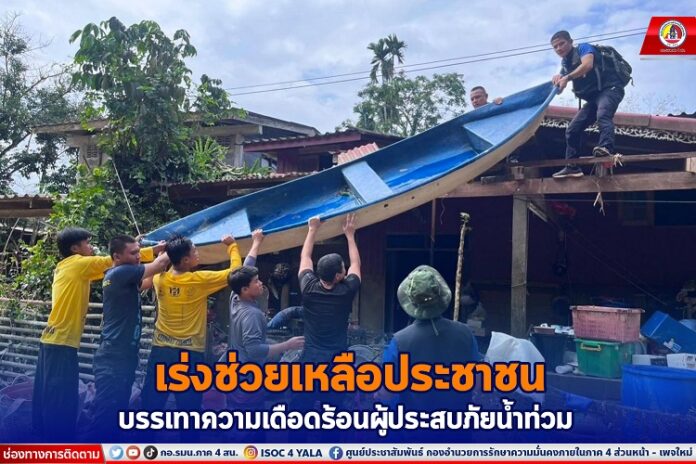 หน่วยเฉพาะกิจสันติสุข โดย ชุดสันติสุขที่ 404 ร่วมกับ ชุดทักษิณสัมพันธ์ที่ 442 ดำเนินกิจกรรมเข้าให้การช่วยเหลือประชาชนที่ได้รับผลกระทบจากอุทกภัยน้ำท่วมในพื้นที่ อำเภอรือเสาะ จังหวัดนราธิวาส โดยได้ช่วยกันฉีด ล้าง ทำความสะอาด และล้างดินโคลน คราบน้ำ เพื่อให้บริเวณที่พักอาศัยของประชาชนกลับมาสะอาดมีความปลอดภัย และสุขอนามัยที่ดี ตลอดจนสร้างขวัญกำลังใจให้ประชาชนผู้ประสบภัย นอกจากนี้ยังได้นำสิ่งของอุปโภคบริโภคนำไปมอบให้กับประชาชนในพื้นที่อีกด้วย