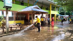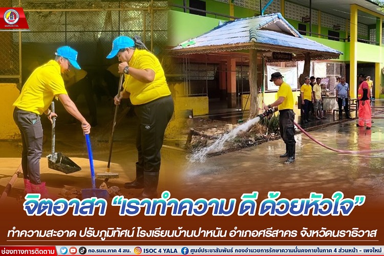 เมื่อวันที่ 3 มกราคม 2567 เวลา 09.00 น. พันเอก ภาณุวัฒน์ สุคชเดช ผู้บังคับหน่วยเฉพาะกิจกรมทหารพรานที่ 49 มอบหมายให้ พันโท อริย์ธัช นารี รองผู้บังคับหน่วยเฉพาะกิจกรมทหารพรานที่ 49 เป็นผู้แทนผู้บังคับหน่วยเฉพาะกิจกรมทหารพรานที่ 49 พร้อมด้วย กำลังพลจิตอาสาของหน่วย ร่วมกับ หน่วยงานราชการ, องค์การบริหารส่วนตำบลศรีสาคร, บุคลากรทางการศึกษา และประชาชนในพื้นที่ตำบลศรีสาคร ร่วมกิจกรรมโครงการจิตอาสา “เราทำความ ดี ด้วยหัวใจ” ร่วมกัน พัฒนาปรับปรุงภูมิทัศน์ ทำความสะอาด ปรับปรุงพื้นที่ โรงเรียนบ้านปาหนัน หลังจากประสบอุทกภัยน้ำท่วมเนื่องจากมีดินโคลนที่ถูกกระแสน้ำพัดพาทำให้บริเวณห้องเรียนสกปรก เพื่อให้บริเวณโรงเรียนกลับคืนสู่ความสะอาด มีสุขลักษณะที่ดีภายในโรงเรียน และสามารถทำการเรียนการสอนได้ตามปกติ โดยมี นายกิตตินันท์ เซ็งกะชรี นายอำเภอศรีสาคร เป็นประธาน ณ โรงเรียนบ้านปาหนัน หมู่ที่ 4 ตำบลศรีสาคร อำเภอศรีสาคร จังหวัดนราธิวาส