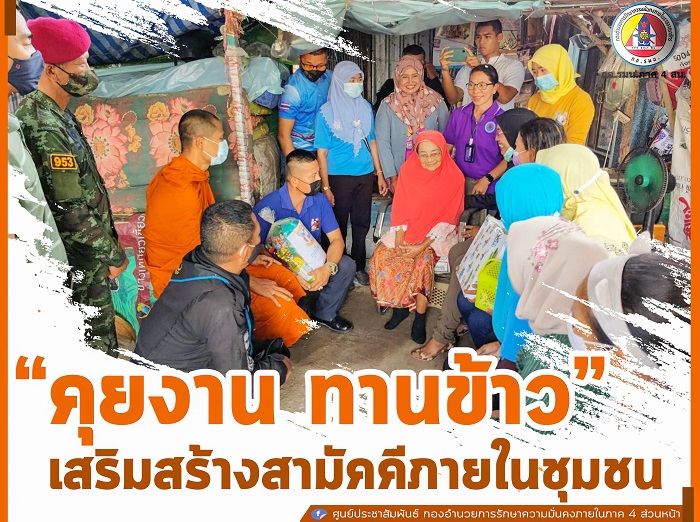 สำหรับกิจกรรม โครงการ “คุยงาน ทานข้าว” จัดขึ้นเพื่อเสริมสร้างความเข้าใจซึ่งกันและกันทั้งหน่วยงานภาครัฐ และประชาชนในพื้นที่ สร้างความสามัคคีภายในชุมชนที่มีความแตกต่างทางศาสนา แต่ไม่แตกแยกภายใต้สังคมพหุวัฒนธรรมของชุมชน
