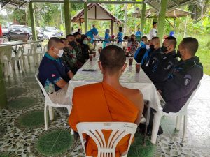 หน่วยเฉพาะกิจกรมทหารพรานที่ 41 จัดกำลังพลชุดปฏิบัติการกิจการพลเรือน พร้อมด้วย ชุดสถานีวิทยุทักษิณสัมพันธ์ที่ 304, ชุดสันติสุขที่ 302, ชุดสันติสุขที่ 308, เจ้าหน้าที่ตำรวจ, โฆษกชาวบ้าน, ผู้นำชุมชน, ผู้นำศาสนา และมวลชนจิตอาสาฯ ร่วมจัดกิจกรรม โครงการ “คุยงาน ทานข้าว” พร้อมทั้งดำเนินการเข้าเยี่ยมเยียนสอบถามความเป็นอยู่ ความต้องการรับความช่วยเหลือ เพื่อเป็นการช่วยเหลือ และบรรเทาความเดือดร้อนของผู้สูงอายุ ผู้พิการ ผู้ป่วยติดเตียง และผู้ที่มีรายได้น้อยในพื้นที่ ตำบลกายูบอเกาะ อำเภอรามัน จังหวัดยะลา ซึ่งมีจำนวน 2 ราย อีกทั้งยังได้มอบถุงยังชีพ (เครื่องอุปโภคบริโภค) เพื่อเป็นการช่วยเหลือ บรรเทาความเดือดร้อน และลดค่าใช้จ่ายในครัวเรือน โดยมี พระครูโสภณสุตาธร เจ้าอาวาสวัดสุนทรประชาราม / เจ้าคณะอำเภอรามัน เป็นประธานฯ
