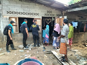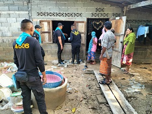 วันที่ 4 มกราคม 2567 เวลา 07.00 น. หน่วยเฉพาะกิจกรมทหารพรานที่ 45 จัดกำลังพล ร่วมกับ ผู้ช่วยผู้ใหญ่บ้าน เข้าสำรวจที่พักอาศัยของครอบครัว พลทหาร อับดุลเลาะ ฮามะ ทหารกองประจำการ ซึ่งมีภูมิลำเนาอยู่บ้านเลขที่ 1/2 บ้านบระเอ็ง หมู่ที่ 2 ตำบลมะรือโบตก อำเภอระแงะ จังหวัดนราธิวาส โดยมีผู้พักอาศัยภายในบ้าน จำนวน 13 คน ซึ่งมีฐานะยากจนและได้รับผลกระทบจากอุทกภัยในห้วงที่ผ่านมา โดยพบปะพูดคุยให้กำลังใจฟื้นฟูสภาพจิตใจ ลดความเครียดหลังน้ำลด พร้อมสอบถามความเดือดร้อน เพื่อจะได้เข้าช่วยเหลือต่อไป