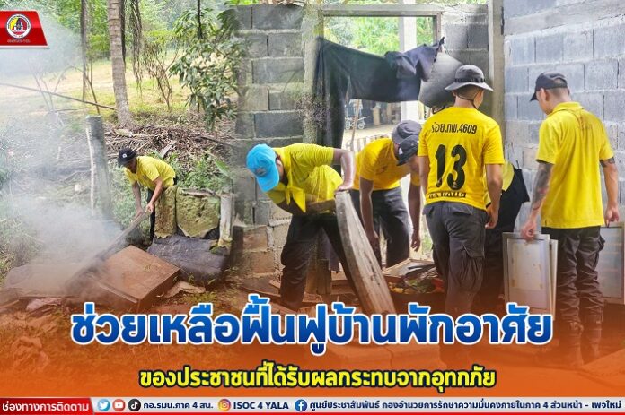 เมื่อวันที่ 4 มกราคม 2567 เวลา 09.00 น. หน่วยเฉพาะกิจกรมทหารพรานที่ 46 จัดกำลังพลจิตอาสาพระราชทาน เข้าช่วยเหลือฟื้นฟูบ้านพักอาศัย ณ บ้านเลขที่ 14/5 บ้านสวนพลู หมู่ที่ 3 ตำบลโคกสะตอ อำเภอรือเสาะ จังหวัดนราธิวาส ซึ่งเป็นบ้านของ นางแวดีเม๊าะ ยะโก๊ะ ประชาชนที่ได้รับผลกระทบจากอุทกภัย (น้ำท่วม) ได้รับความเสียหาย เพื่อบรรเทาความเดือดร้อนให้กับประชาชนในพื้นที่ที่ได้รับผลกระทบ โดยหน่วยฯได้ขนย้ายสิ่งของเครื่องใช้ที่ชำรุดและไม่จำเป็นออกจากตัวบ้าน พร้อมทั้งนำเศษกิ่งไม้และขยะออกจากตัวบ้านเป็นที่เรียบร้อย