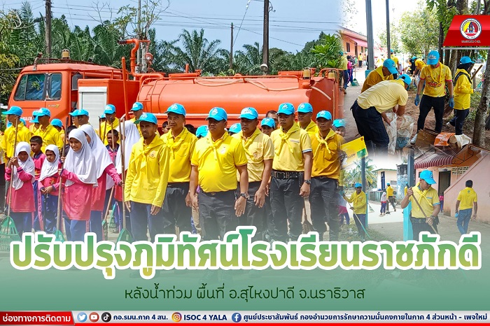 เมื่อวันที่ 4 มกราคม 2567 เวลา 13.00 น. ที่ โรงเรียนราชภักดี บ้านโคกสตอ อำเภอสุไหงปาดี จังหวัดนราธิวาส หน่วยเฉพาะกิจกรมทหารพรานที่ 48 จัดกำลังพล ชุดปฏิบัติการกิจการพลเรือน กองร้อยทหารพราน 4801 ร่วมกับ ฝ่ายปกครองอำเภอสุไหงปาดี, ตำรวจตระเวนชายแดนที่ 447, ผู้นำท้องถิ่น, ผู้แทนส่วนราชการที่เกี่ยวข้อง และประชาชนจิตอาสาในพื้นที่ ร่วมกิจกรรมจิตอาสา “เราทำความดี ด้วยหัวใจ” พัฒนาปรับภูมิทัศน์ทำความสะอาดโรงเรียน และบริเวณโดยรอบ หลังจากได้รับผลกระทบจากน้ำท่วม เพื่อให้บริเวณโรงเรียนกลับคืนสู่ความสะอาด มีสุขลักษณะที่ดีภายในโรงเรียน และสามารถทำการเรียนการสอนได้ตามปกติ