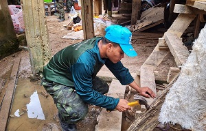 ทั้งนี้ เจ้าหน้าที่ทหารได้ดำเนินการซ่อมแซมบ้านให้กับผู้ประสบภัยในวันนี้ (6 มกราคม 2567) โดยอยู่ในขั้นตอนการสำรวจบ้านเรือนที่จะต้องซ่อมแซม จำนวน 3 หลัง ปัจจุบัน และได้ดำเนินการซ่อมแซมบ้านเสร็จแล้ว จำนวน 3 หลัง เจ้าหน้าที่ยังคงเร่งสำรวจประชาชนที่ได้รับผลกระทบจากเหตุดังกล่าว เพื่อช่วยเหลือให้เร็วที่สุดเพื่อบรรเทาความเดือดร้อนให้กับพี่น้องประชาชน