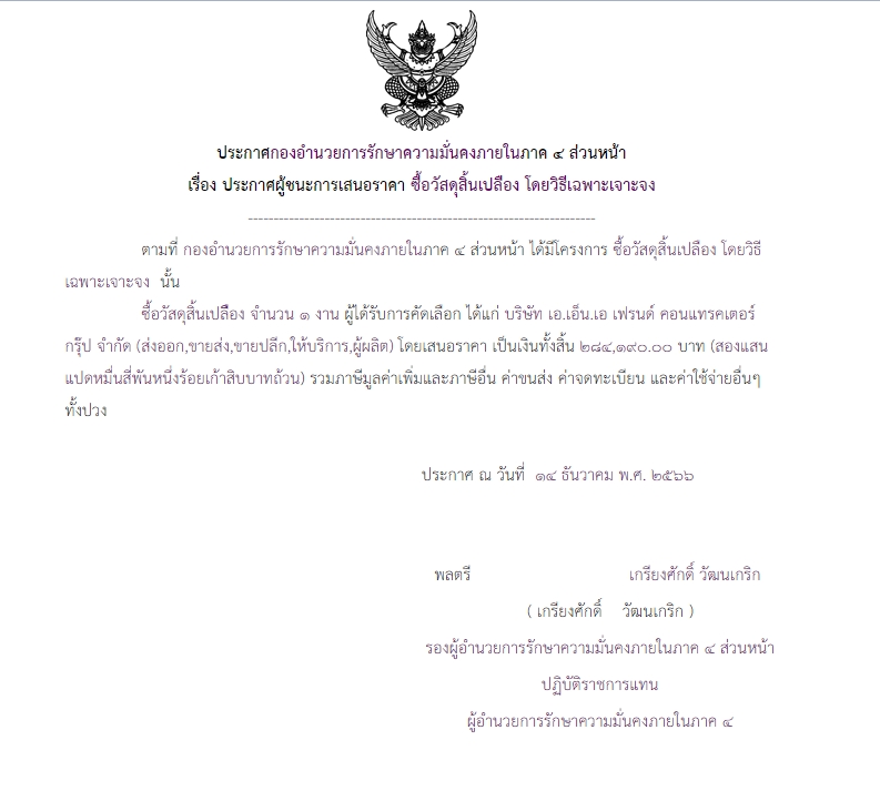 จัดซื้อ จัดจ้างประกาศผู้ชนะการเสนอราคา ประกาศผู้ชนะการเสนอราคา ซื้อวัสดุสิ้นเปลือง โดยวิธีเฉพาะเจาะจง January 7, 2024 294 Share Facebook Twitter Google+ Telegram LINE