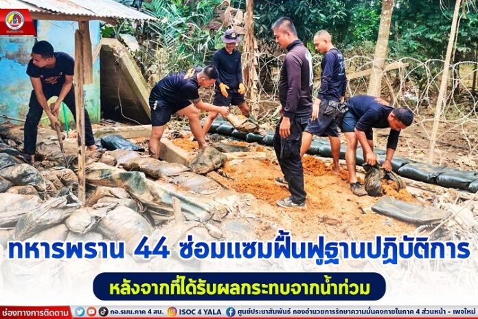 วันที่ 8 มกราคม 2567 หน่วยเฉพาะกิจกรมทหารพรานที่ 44 ดำเนินการพัฒนา และปรับปรุงพื้นที่โดยรอบ ในส่วนของฐานปฏิบัติการ กองร้อยหน่วยขึ้นตรงทหารพรานที่ 44 หลังจากที่ได้รับผลกระทบจากภัยน้ำท่วมในห้วงที่ผ่านมา ซึ่งหลังจากที่เจ้าหน้าที่ได้เข้าให้การช่วยเหลือพี่น้องประชาชนในพื้นที่รับผิดชอบเสร็จเรียบร้อยแล้ว ทางหน่วยจึงได้ดำเนินการพัฒนา และปรับปรุงบริเวณพื้นที่โดยรอบของฐานปฏิบัติการ ณ ฐานปฏิบัติการต่าง ๆ ของหน่วยขึ้นตรงที่ได้รับผลกระทบทั้ง 4 อำเภอ ประกอบไปด้วย อำเภอสายบุรี อำเภอกะพ้อ อำเภอทุ่งยางแดง และ อำเภอไม้แก่น จังหวัดปัตตานี
