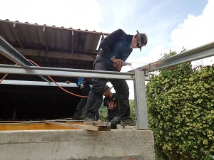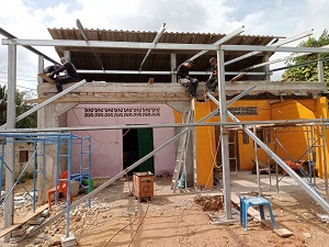 นางสาวร๊ะนิง ฮะซา บ้านเลขที่ 17/5 หมู่ที่ 3 ตำบลสะเอะ อำเภอกรงปินัง จังหวัดยะลาดำเนินการซ่อมแซมชายคาหน้าบ้าน ดำเนินการไปแล้ว 50%
