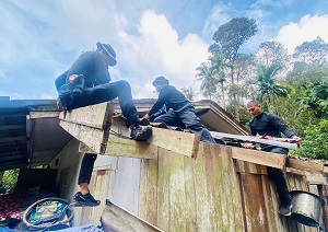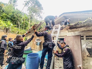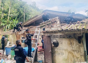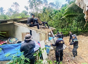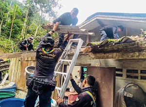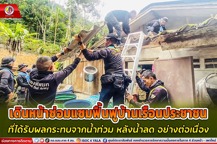 วันที่ 9 มกราคม 2567 เวลา 08.30 น. หน่วยเฉพาะกิจกรมทหารพรานที่ 33 โดย กองร้อยทหารพรานที่ 3304 จัดกำลังพลชุดช่าง ร่วมกับผู้นำหมู่บ้าน ผู้นำชุมชน และส่วนราชการที่เกี่ยวข้อง เข้าดำเนินการซ่อมแซมหลังคาบ้านให้กับ นางไพเราะ กาญจนา ณ บ้านเลขที่ 50 หมู่ที่ 2 บ้าน กม.26 ตำบลตาเนาะปูเต๊ะ อำเภอบันนังสตา จังหวัดยะลา เพื่อเป็นการช่วยเหลือฟื้นฟูบ้านเรือนประชาชนหลังน้ำลด จากเหตุอุทกภัยในห้วงที่ผ่านมา โดยเจ้าหน้าที่ยังคงเร่งดำเนินการให้เร็วที่สุดเพื่อบรรเทาความเดือดร้อนให้กับพี่น้องประชาชน