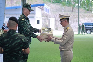 จากนั้น พลเอก เจริญชัย หินเธาว์ เป็นประธานมอบของขวัญปีใหม่ 2567 แก่ผู้แทนหน่วยขึ้นตรงกองอำนวยการรักษาความมั่นคงภายในภาค 4 ส่วนหน้า ณ สนามฟุตซอลนาควานิช เพื่อส่งต่อของขวัญ จากใจผู้บังคับบัญชา แทนคำขอบคุณและส่งกำลังใจแก่กำลังพลทุกนายอย่างทั่วถึง ซึ่งในปีนี้เป็นการมอบ เสื้อคอมแบตเชิ้ตแบบมาตรฐาน หรือ เสื้อแทคติคอลแขนยาว ให้กับกำลังพลได้สวมใส่เพื่อความคล่องตัว ในการปฎิบัติภารกิจพิเศษ เช่น การปฎิบัติภารกิจบังคับใช้กฎหมาย การเข้าตรวจค้นวัตถุต้องสงสัยในพื้นที่เสี่ยง และการปฎิบัติภารกิจทางยุทธวิธีที่ต้องใช้ความรวดเร็ว เน้นความคล่องตัวในการออกปฏิบัติภารกิจ