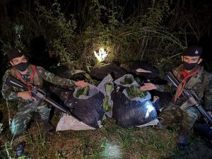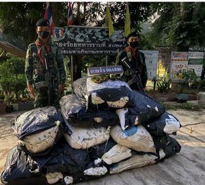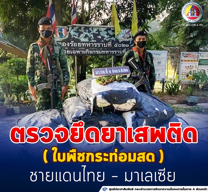 กองกำลังเทพสตรี ตรวจยึดของกลางยาเสพติดให้โทษประเภทที่ 5 (ใบพืชกระท่อมสด) บริเวณ รั้วชายแดน ไทย – มาเลเซีย ใกล้กับช่องทางผิดกฎหมาย ในพื้นที่ หมู่ที่ 1 บ้านต้นพยอม ตำบลปาดังเบซาร์ อำเภอสะเดา จังหวัดสงขลา จำนวน 14 กระสอบ กระสอบละ 25 กิโลกรัม น้ำหนักรวม 350 กิโลกรัม ตามสั่งการของผู้บังคับบัญชา เพื่อยกระดับการป้องกัน ปราบปรามการลักลอบนำสิ่งผิดกฎหมาย ผ่านทางช่องทางด่านศุลกากร และช่องทางผิดกฎหมาย รวมทั้ง การลักลอบหลบหนีเข้าเมืองผิดกฎหมายของบุคคลต่างด้าว ตลอดจน การกระทำผิดกฎหมายทุกรูปแบบ บริเวณ ตามแนวชายแดน ไทย – มาเลเซีย