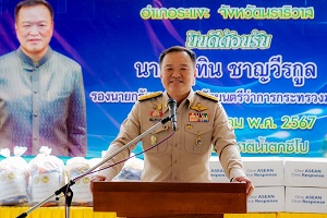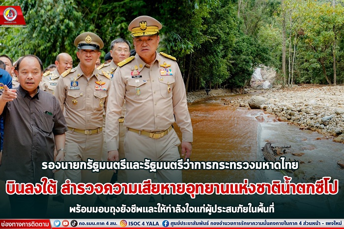 วันนี้ ( 12 มกราคม 2567 ) เวลา 11.00 น. นายอนุทิน ชาญวีรกูล รองนายกรัฐมนตรีและรัฐมนตรีว่าการกระทรวงมหาดไทย พร้อมด้วย พลเอก เกรียงไกร ศรีรักษ์ ประธานคณะที่ปรึกษารัฐมนตรีว่าการกระทรวงมหาดไทย และคณะฯ ลงใต้ปฏิบัติภารกิจเยี่ยมประชาชนที่ได้รับผลกระทบจากเหตุอุทกภัยในพื้นที่จังหวัดนราธิวาส เพื่อตรวจเยี่ยมอุทยานแห่งชาติน้ำตกซีโป ตำบลเฉลิม อำเภอระแงะ จังหวัดนราธิวาส พร้อมพบปะมอบถุงยังชีพให้กับประชาชนที่ได้รับความเสียหายจากอุทกภัยน้ำท่วม โดยมี พลโท ปราโมทย์ พรหมอินทร์ แม่ทัพน้อยที่ 4/รองผู้อำนวยการรักษาความมั่นคงภายในภาค 4 ส่วนหน้า, พลตรี เฉลิมพร ขำเขียว ผู้บังคับหน่วยเฉพาะกิจนราธิวาส,ว่าที่ร้อยตรี ตระกูล โทธรรม ผู้ว่าราชการจังหวัดนราธิวาส ,นายฉัตรชัย อุตสาหะ รองผู้ว่าราชการจังหวัดนราธิวาส ตลอดจนหัวหน้าส่วนราชการ ,กำลังพล และประชาชนผู้ประสบภัยร่วมให้การต้อนรับ