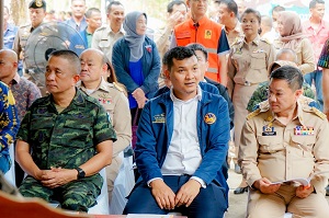 โอกาสนี้ นายอนุทิน ชาญวีรกูล รองนายกรัฐมนตรีและรัฐมนตรีว่าการกระทรวงมหาดไทย ได้กล่าวพบปะผู้ประสบภัยทุกคนว่า การลงพื้นที่ในวันนี้ เพื่อมาให้กำลังใจทุกคน ซึ่งด้านผู้ว่าราชการจังหวัดนราธิวาสเองเมื่อมีเหตุภัยพิบัติต่าง ได้รับมอบอำนาจให้เร่งช่วยเหลือดูแลเยียวยาผู้ประสบภัยอย่างเร่งด่วนและขอให้มั่นใจว่าเจ้าหน้าที่พร้อมดูแลประชาชน ซึ่งภัยพิบัติจากธรรมชาติเป็นเรื่องของภัยธรรมชาติที่เกิดขึ้น หน้าที่ของเราต้องช่วยกันป้องกัน และเมื่อเกิดเหตุ เจ้าหน้าที่ทุกส่วนก็พร้อมจะฟื้นฟูเยียวยา บำบัด แก้ไขสถานการณ์ให้เร็วที่สุด ทุกส่วนพร้อมที่จะลงมาช่วยเหลือให้มากที่สุด ทั้งนี้ ในเรื่องของปัญหาอุทกภัยในพื้นที่จังหวัดชายแดนภาคใต้ รวมถึง 4 อำเภอของจังหวัดสงขลานั้น ทางรัฐบาลได้เร่งระดมให้ความช่วยเหลือในการเยียวยาและการฟื้นฟูบ้านเรือน ถนนหนทาง และสาธารณูปโภค โดยจังหวัดนราธิวาสได้ใช้งบประมาณเพื่อช่วยเหลือผู้ประสบภัยและดูแลเบื้องต้น ทางรัฐบาลโดยกระทรวงมหาดไทยได้จัดสรรงบประมาณฟื้นฟูซ่อมแซมและช่วยเหลือชาวบ้าน 100 ล้านบาท ในพื้นที่จังหวัดนราธิวาสเพราะเป็นจังหวัดที่มีความเสียหายมากที่สุด ในส่วนของจังหวัดอื่นๆ การช่วยเหลือในส่วนของงบประมาณทุกจังหวัดมีงบประมาณที่จะช่วยเหลืออยู่แล้ว ทั้งการเยียวยา การฟื้นฟู ขึ้นอยู่กับแต่ละพื้นที่ และพื้นที่ไหนที่เสียหายมากก็จัดสรรตามความเหมาะสม ไม่มีคำว่าเลือกปฏิบัติและขอให้มั่นใจได้ว่ารัฐบาลพร้อมให้การช่วยเหลือประชาชนอย่างเต็มขีดความสามารถ