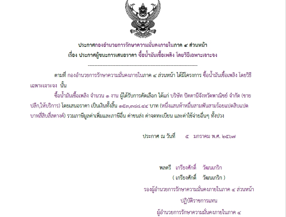 จัดซื้อ จัดจ้างประกาศผู้ชนะการเสนอราคา ประกาศผู้ชนะการเสนอราคา ซื้อน้ำมันเชื้อเพลิง โดยวิธีเฉพาะเจาะจง January 13, 2024 366 Share Facebook Twitter Google+ Telegram LINE