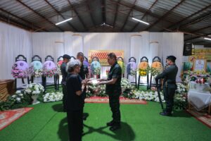จากนั้น แม่ทัพภาคที่ 4/ ผู้อำนวยการรักษาความมั่นคงภายในภาค 4 เป็นประธานพิธีสวดพระอภิธรรมศพ ร้อยตำรวจโท สถาพร สุจิณโณ อายุ 56 ปี หัวหน้าชุดเฝ้าตรวจ 4411 สังกัด กองกำกับการตำรวจตระเวนชายแดนที่ 44 ณ วัดสามกอง ตำบลเกาะแต้ว อำเภอเมือง จังหวัดสงขลา ซึ่งเสียชีวิตจากกรณีคนร้าย ใช้อาวุธปืนซุ่มยิงขณะเดินทางกลับจากการประชุม ที่กองกำกับการตำรวจตระเวนชายแดนที่ 44 ตำบลบุดี อำเภอเมือง จังหวัดยะลา เพื่อเดินทางกลับมายังฐานปฏิบัติการในพี้นที่จังหวัดนราธิวาส เหตุเกิดเมื่อคืนวันที่ 11 มกราคม 2567 ที่ผ่านมา โดยมีผู้บังคับบัญชา กำลังพลเพื่อนตำรวจ ครอบครัว ญาติ และประชาชนในพื้นที่ เข้าร่วมพิธีสวดพระอภิธรรม เพื่อแสดงความไว้อาลัยต่อวีรชนผู้กล้า