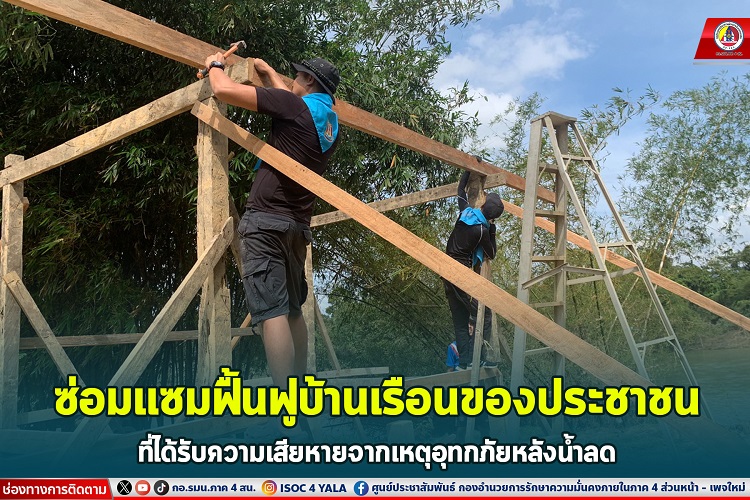 เมื่อวันที่ 14 มกราคม 2567 เวลา 09.00 น. หน่วยเฉพาะกิจกรมทหารพรานที่ 46 โดย ร้อยเอก ชัยยุทธ สุกบู ผู้บังคับกองร้อยทหารพรานที่ 4613 พร้อมด้วย รองหัวหน้าชุดปฏิบัติการกิจการพลเรือนที่ 13 ,ชุดช่างกองร้อยทหารพรานที่ 4613 ร่วมกับ กำลังพลจิตอาสาพระราชทานของหน่วย เข้าช่วยเหลือฟื้นฟูบ้านเรือนของประชาชนที่ได้รับความเสียหายจากอุทกภัย (น้ำท่วม) รวมทั้งได้ซ่อมแซมบ้านเรือนให้กับประชาชนจำนวน 1 หลัง เป็นบ้านของนาย มะคอรีดี บลูกาวาลี บ้านเลขที่ 36 หมู่ที่ 6 บ้านบลูกาฮีเล ตำบลบาตง อำเภอรือเสาะ จังหวัดนราธิวาส เพื่อเป็นการ บรรเทาทุกข์ บำรุงสุข ให้กับประชาชนในพื้นที่ ซึ่งปัจจุบันทางหน่วยได้ดำเนินการซ่อมแซม ให้สามารถเข้าพักอาศัยได้โดยเร็วที่สุด และได้ดำเนินการไปแล้ว 20% โดยประชาชนในพื้นที่ได้กล่าวขอบคุณเจ้าหน้าที่ทหาร ที่เข้ามาช่วยเหลือซ่อมแซมบ้านเรือนของประชาชนอย่างในครั้งนี้ เพราะทหารจะอยู่เคียงข้างประชาชนในทุกโอกาส